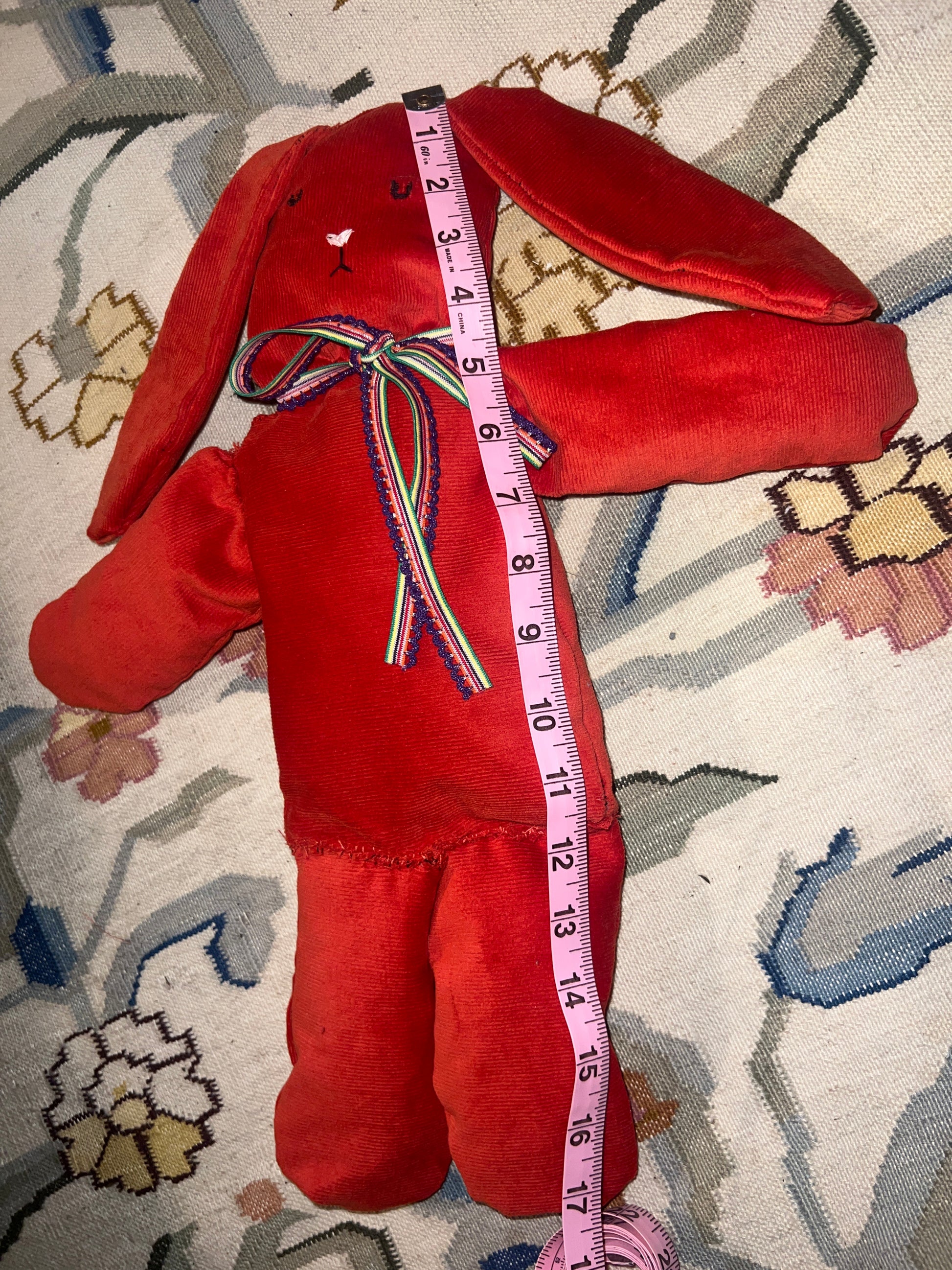 17" in handmade plush rabbit in burnt orange corduroy